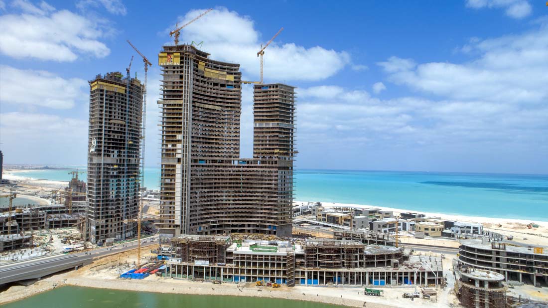The development of New Alamein City is continuing apace, making what was once a place of warfare and destruction a major tourist destination on Egypt’s Mediterranean coast The buildings themselves are in different phases of completion, some nearly finished, others completly finished and delivered. Other new buildings were also under construction, including a Alamein Towers, “Latin District”, and another amazing buildings.